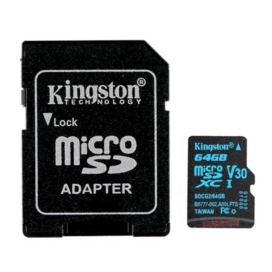 - Thẻ nhớ Kingston 64GB microSDXC Canvas Go 90R/45W U3 UHS-I V30 Card + SD Adapter thiết kế chịu được các điều kiện thời tiết khắc nghiệt. Trọng lượng cực nhẹ và vô cùng nhỏ gọn, bạn có thể mang theo bên mình dễ dàng.