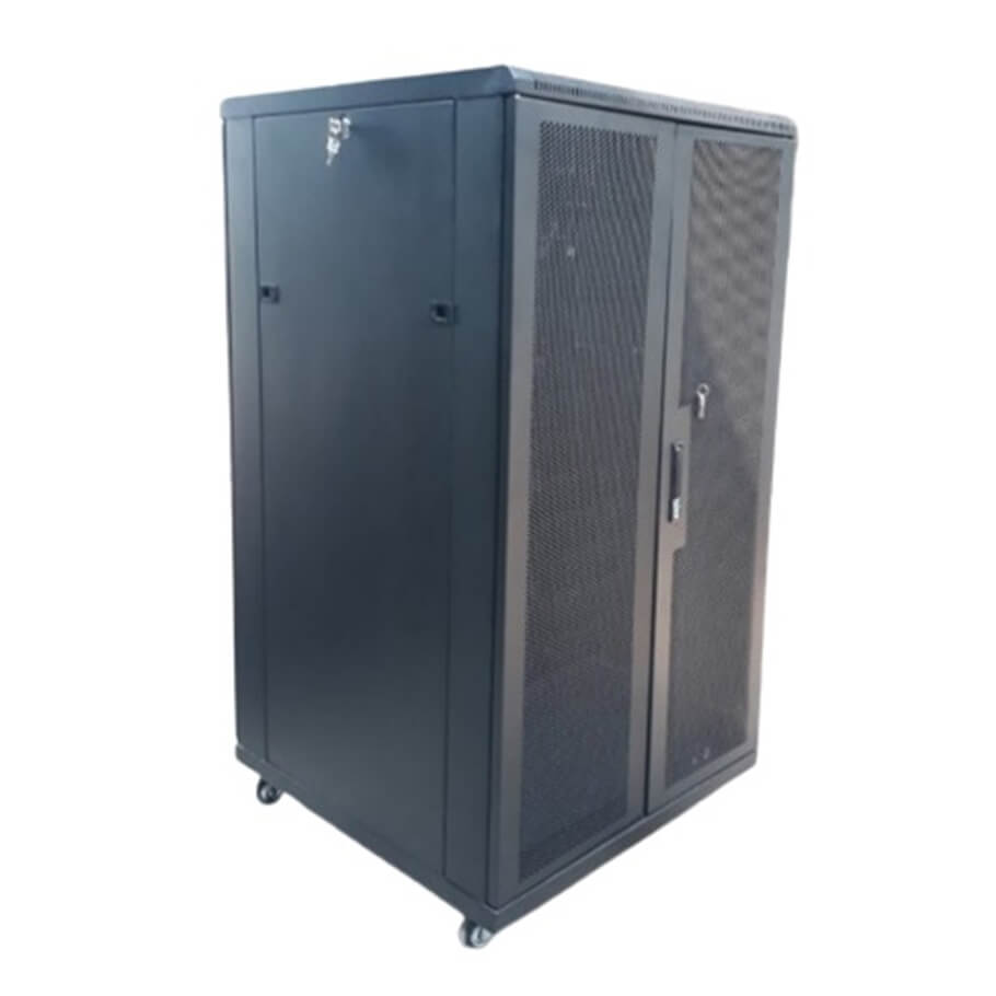 - Quản lý cáp tiện lợi: 2 thanh máng cáp dọc thân tủ giúp sắp xếp dây mạng gọn gàng.