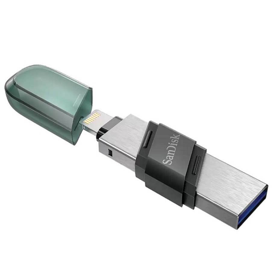 - USB SanDisk iXpand Flash Drive Flip SDIX90N được thiết kế với một đầu là cổng USB Type-A để kết nối với máy tính hay các thiết bị hỗ trợ khác, một đầu còn lại là cổng Lightning để kết nối với các thiết bị iPhone, iPad. Dung lượng 128GB cho phép bạn thoải mái không gian lưu trữ.