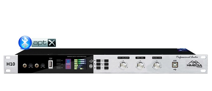 - Công nghệ Bluetooth đẳng cấp nhất từ Qualcomm luôn luôn không thể thiếu trên các sản phẩm của Himedia. Tuy nhiên ở phiên bản mới nhất này được nâng cấp lên chuẩn AptX+ gần như triệt tiêu tối đa suy hao âm thanh từ tín hiệu không dây. Cho những trải nghiệm chân thực tương đồng với nhau ở cả 2 cách kết nối trên Vang số H10. Ngoài ra đi kèm theo sản phẩm hãng còn tặng kèm thêm một remote hồng ngoại để người sử dụng điều khiển vang số dễ dàng như tivi.