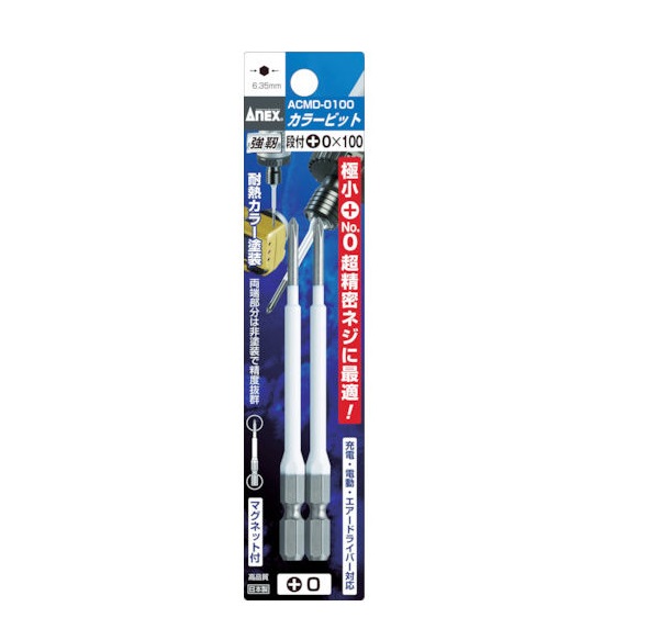 - Vỉ 2 mũi vít ACMD-0100 Anex Nhật Bản là mẫu sản phẩm được thiết kế có độ chính xác cao với đầu (+)0 dùng được cho các loại máy bắn vít, máy khoan, chuôi tô vít… ứng dụng rộng rãi trong các ngành công nghiệp gỗ; công việc liên quan đến kim loại; lắp đặt thiết bị…